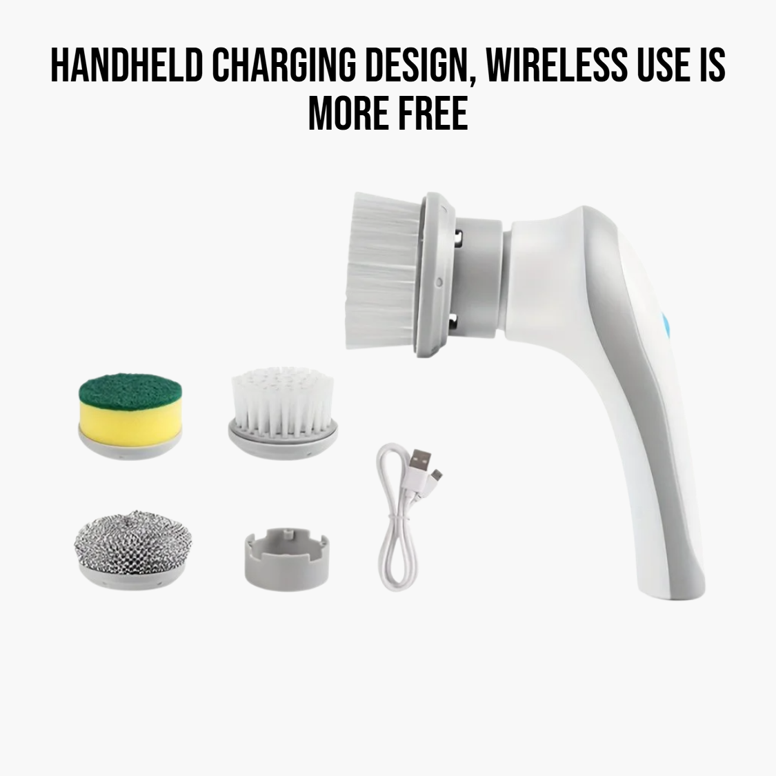 Efficient electric cleaning brush with powerful motor, multiple brush heads, ergonomic handle, rechargeable battery, waterproof design, suitable for kitchen, bathroom, and tile cleaning.