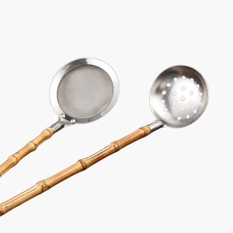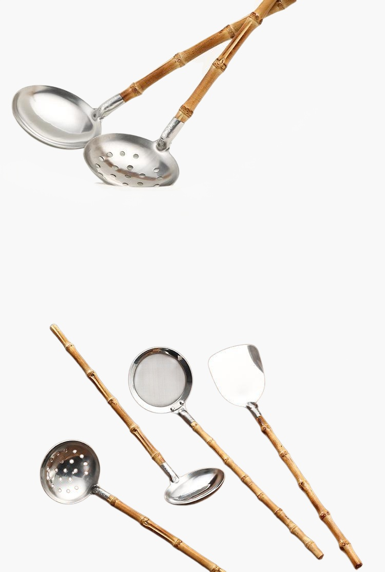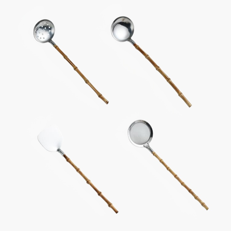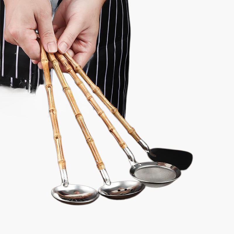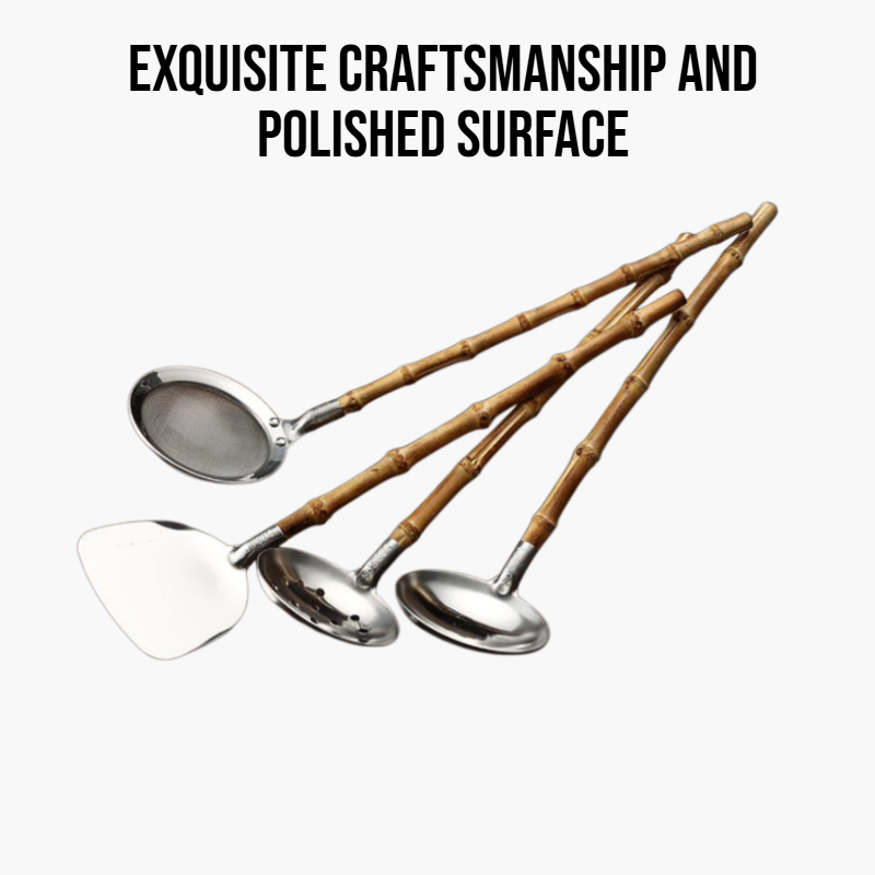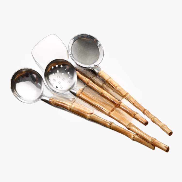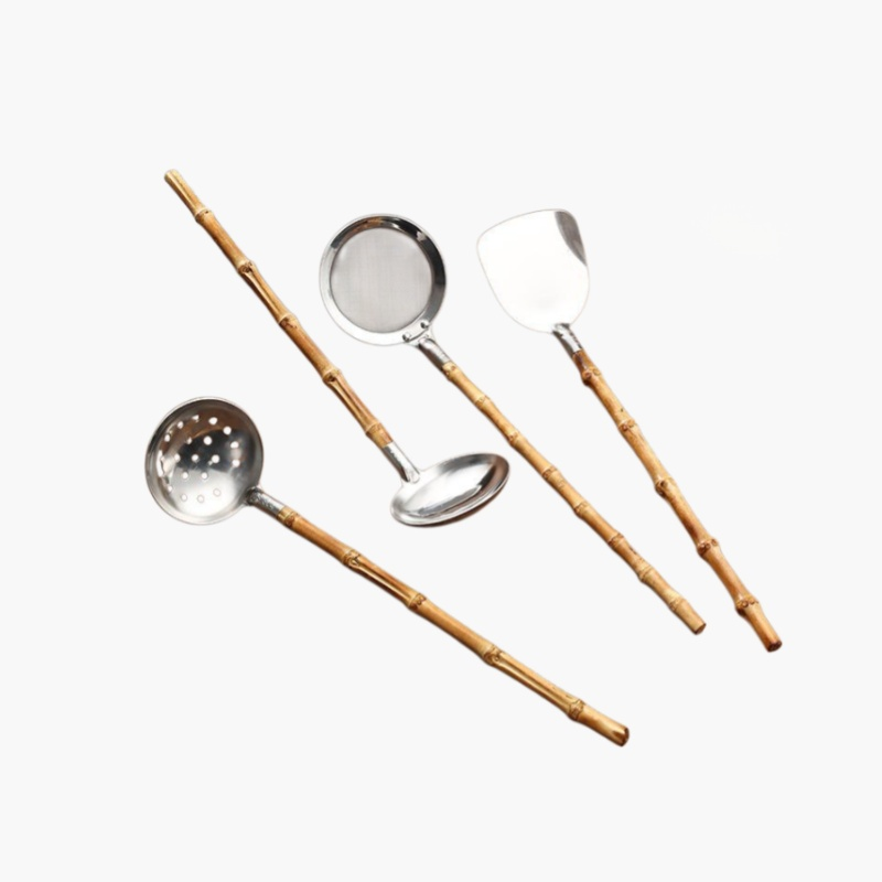 Durable stainless steel kitchenware with eco-friendly bamboo handles. Rust-resistant, easy to clean, and comfortable to hold. Suitable for daily cooking and modern kitchens.
